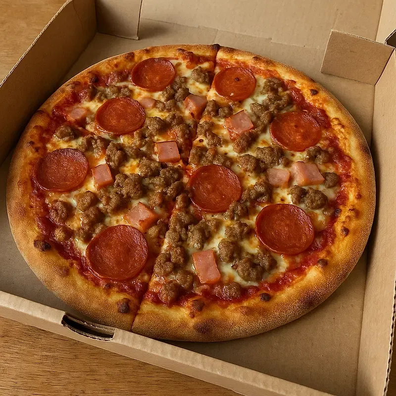 mozarella, mince beef, ham, bacon, pepperoni
